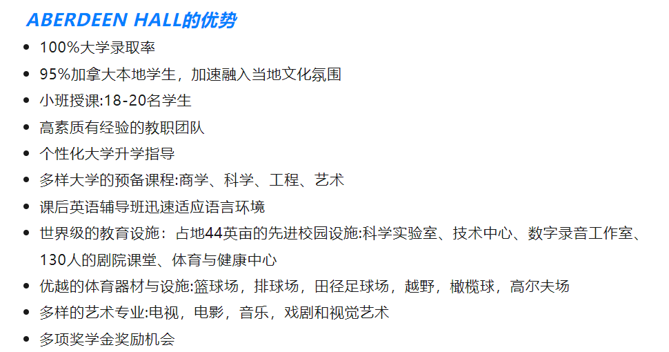 启德教育与加拿大顶尖私立贵族学校阿伯丁霍尔学校Aberdeen Hall 官方合作,Aberdeen Hall是一所世界一流的大学预备学校,位于BC省Kelowna市,提供幼儿园至12年级的教育。以丰富的学术课程脱颖而出, 旨在实现100%的大学录取率。