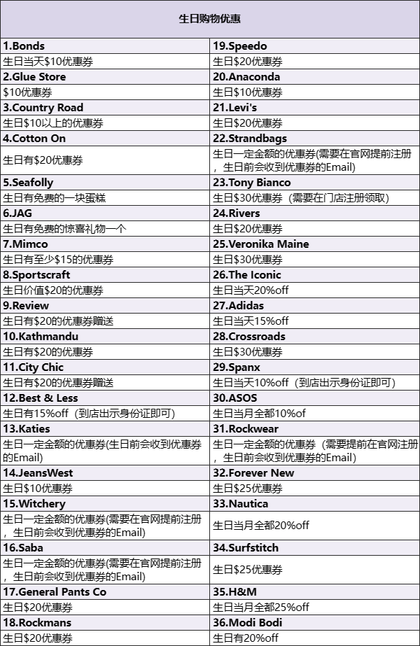 澳洲生日福利优惠