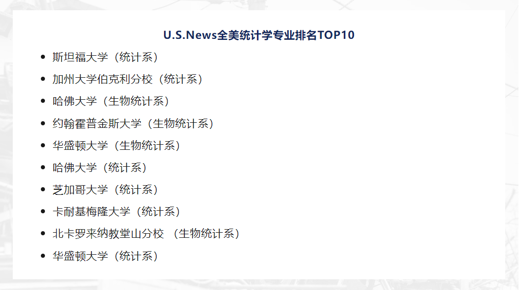 一般申请应用数学专业的同学直博的居多。建议大家如果想要申请这个专业的美国硕士或者博士的话,最好参加GRE数学的专项考试。统计学/生物统计学