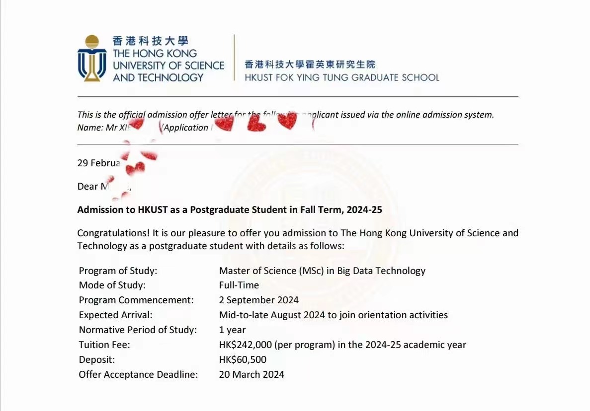 香港硕士offer➕1恭喜JZ斩获香港科技大学 大数据科学硕士offer