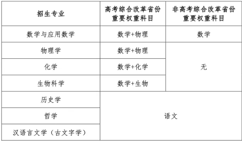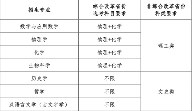 申请报名考生分为以下两类:第一类:高考成绩优异,学科专业能力突出,创新能力强的考生。第二类:相关学科领域具有突出才能和表现的考生,破格入围条件为高中阶段全国中学生(数学、物理、化学、生物或信息学)奥林匹克竞赛全国决赛二等奖及以上。