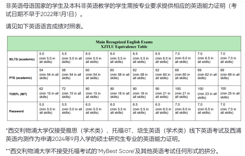 请注意:若符合上列情况的申请人递交了有效雅思/托福/PTE 等英语成绩,将以所提供的英语成绩为准。