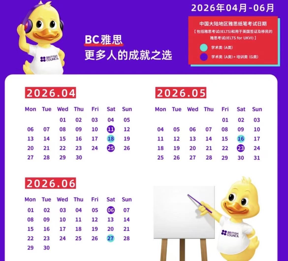 考试培训2026雅思4月-6月全国考试日期一览表2026/02/28/周六 17:29点击量:58今年准备考雅思的同学请关注考试日期哦~~更多文章成功案例港澳本科学子免语言斩获全美前十大学硕士录取!恭喜我的亲学生收获前三十录取+2!学生是澳门的某大学本科在读,由于学业紧张,语言备考一段时间后决定放弃.我们立刻调整学校方案,一个一个跟学校沟通学生的本科背景是否能免除语言.学生一开始学校目标很清晰, 查看详情>> 发布日期:2026-03-09 阅读量:15案例查看详情 在线咨询 考试培训2026雅思4月-6月全国考试日期一览表今年准备考雅思的同学请关注考试日期哦~~ 查看详情>> 发布日期:2026-02-28 阅读量:57查看详情 在线咨询 成功案例低分跨专业逆袭美国前三十硕士录取!美国前三十大学,华盛顿大学圣路易斯分校最近又放出一波录取,祝贺我们的学生xy同学斩获录取。学生情况:本科背景:985在读专业:管理申请专业:商业分析均分:78,wes认证后3.02/4雅思:7.5GR 查看详情>> 发布日期:2026-02-28 阅读量:55查看详情 在线咨询
