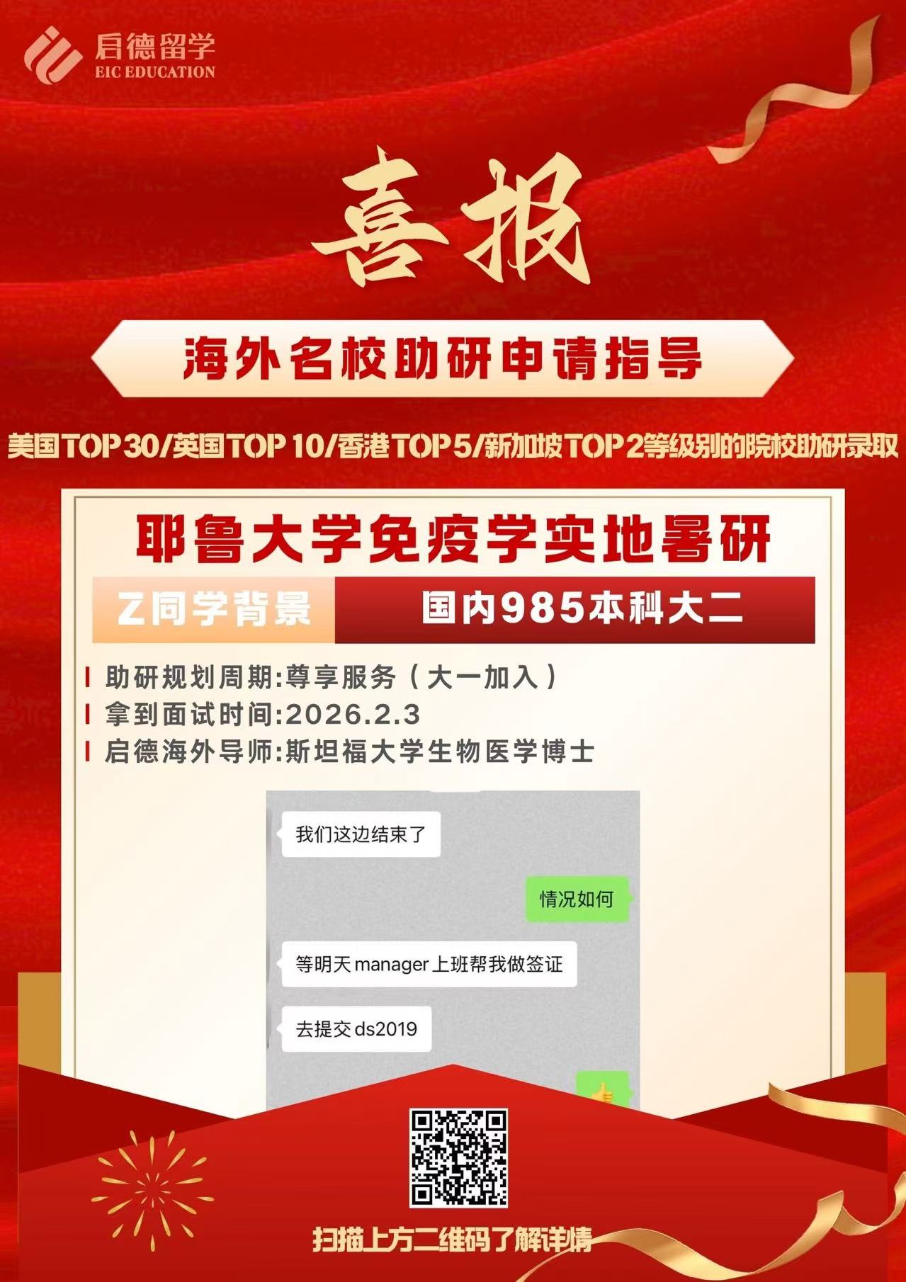 国内985本科大二Z同学收获耶鲁大学免疫学方向实地暑研offer!