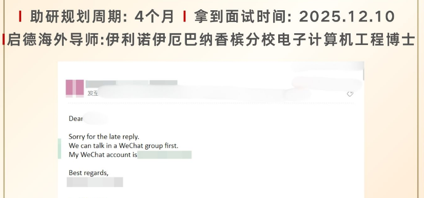 学生院校背景较好,但成绩不占优势,为全面增强其申请竞争力,助研团队从学生实际情况出发,帮助其梳理个人优势,深度优化简历内容,并反复模拟打磨面试表达,在套磁过程中,服务老师精准筛选研究方向,合理把控跟进节奏,最终帮助同学成功收获港中文教授青睐!