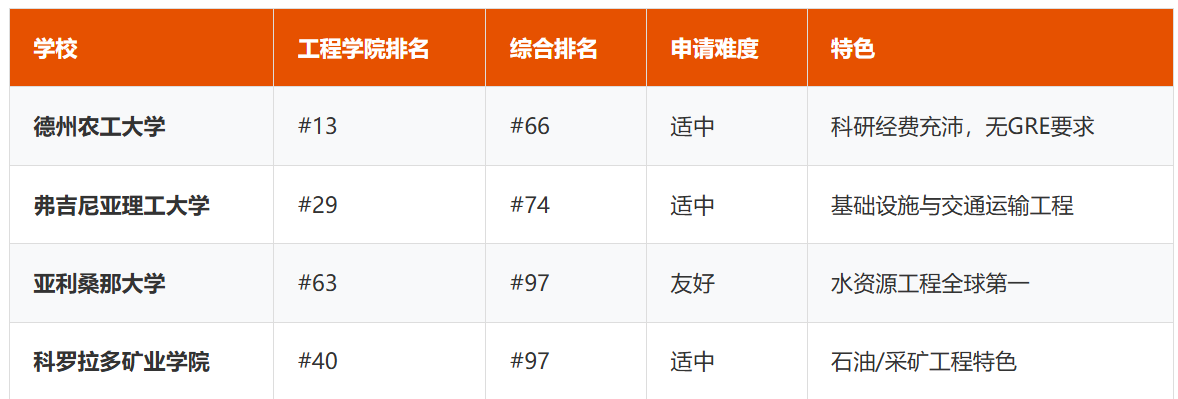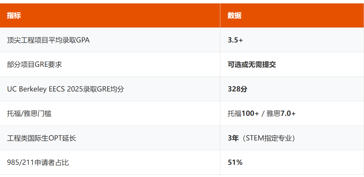 工程学是"实力派"的赛道——科研深度与方向匹配度是制胜关键。善用"无需GRE"政策红利,瞄准高性价比院校(Texas A&M/Purdue/UIUC),同样能弯道超车进入顶尖项目。