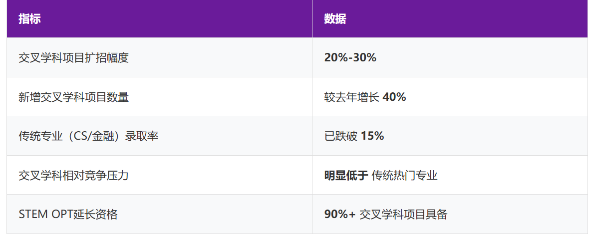 交叉学科是2026年申请季的"蓝海赛道"——扩招红利明显、STEM资格稳定、就业前景广阔。现在是窗口期,但竞争也在升温——建议尽早准备、精准定位。