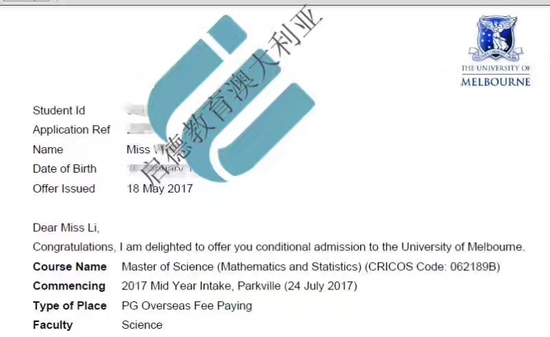 墨尔本大学数学统计专业,五月八号递交申请,学生均分75.5。通过学习理学院院校联系顺利下通知书。启德的境外资源丰富,文案材料做到极致。才会有这样的结果。还有谁?还有谁?能做到。