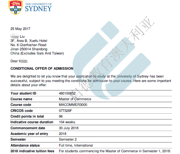 Offer Show - 悉尼大学Master of Commerce