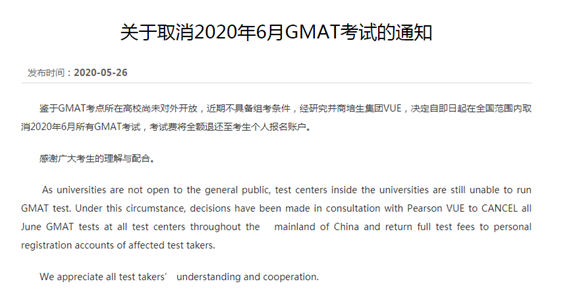 GMAT考试6月宣布取消