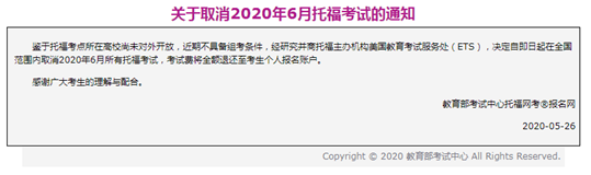 托福考试6月宣布取消