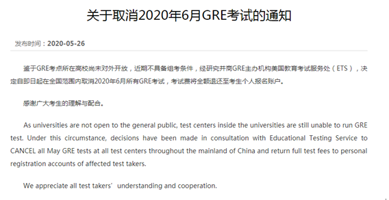 GRE考试6月宣布取消