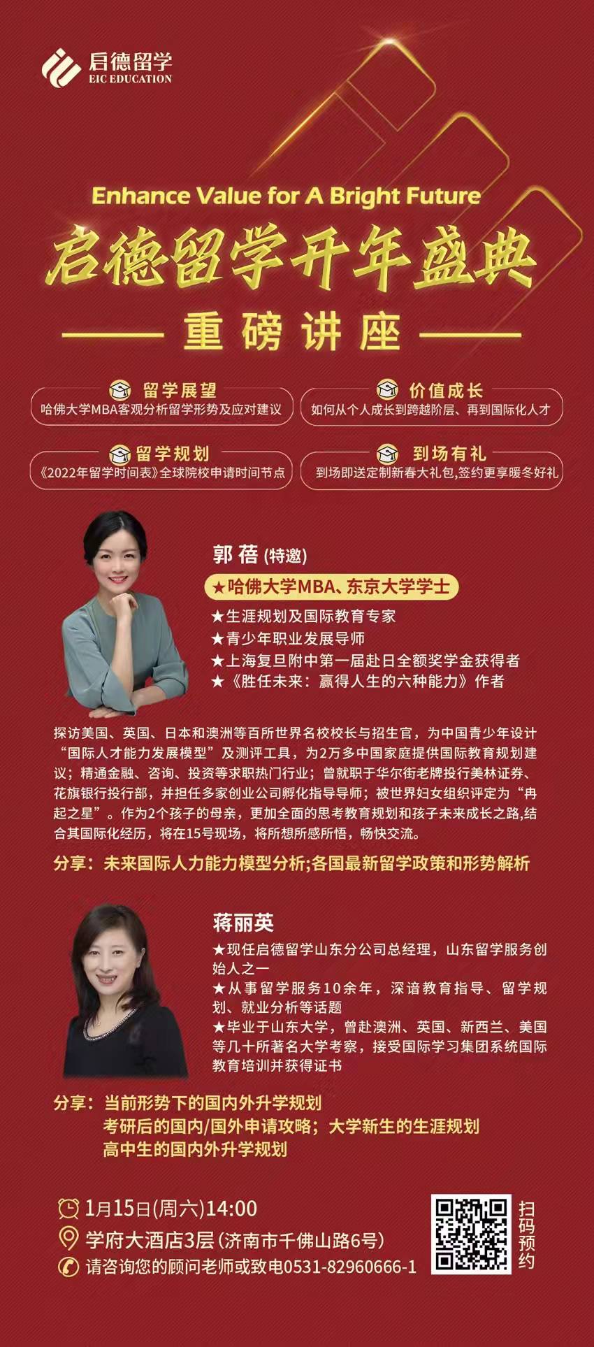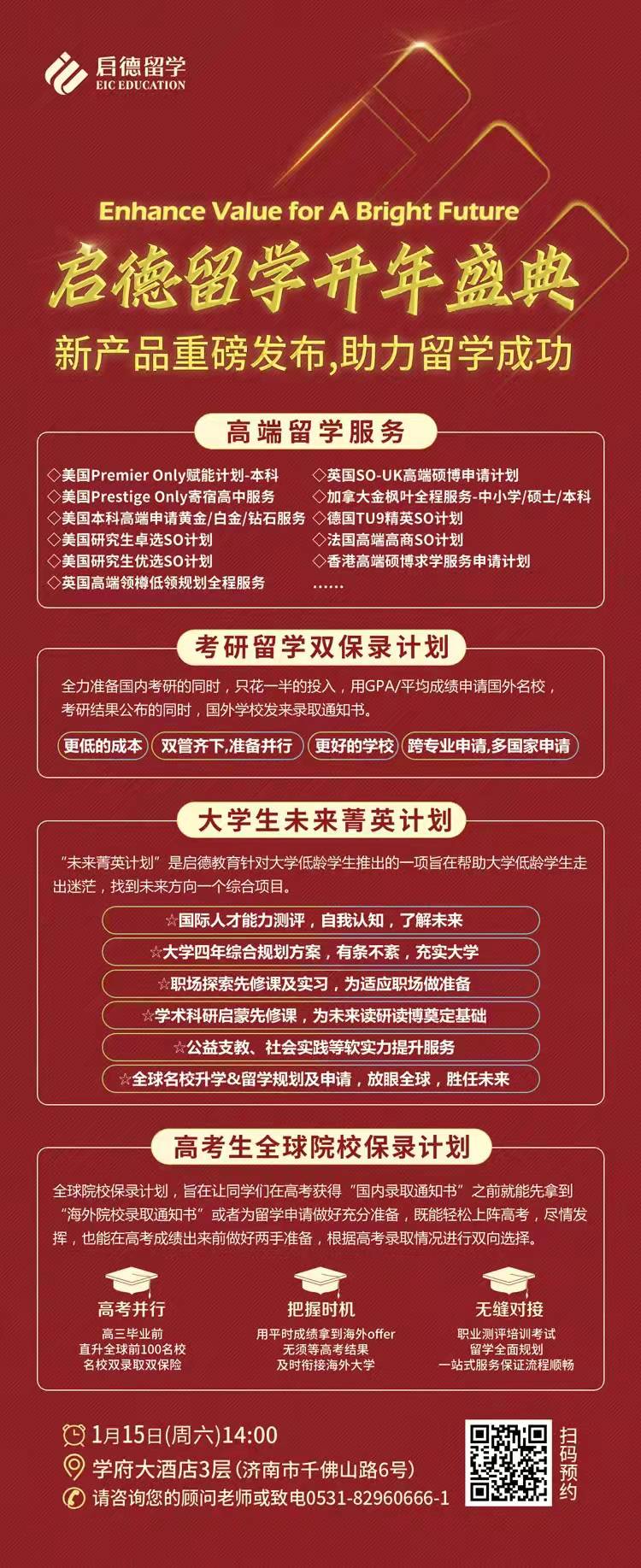 第56届启德国际教育展·济南站:名校招生官一对一咨询,明晰未来成长路径;各年龄段留学规划、申请准备,一步到位;《2023研究生留学白皮书》全新发布,专业解读;更多精彩内容尽在10月22日14:00,学 查看详情>>