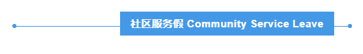 参加紧急志愿服务(如遇到天灾人祸需要救援)或陪审团的员工可以请社区服务假。这个假通常是无薪的,除了陪审团义务。在澳大利亚,如果被选中参加陪审团,那么每个公民都有义务去参加。参加的人都会收到政府补贴,但往往是低于全职工资的。每年参加陪审团的前10天,员工都可以得到公司补助,即补齐全职工资与陪审团补贴的差距。