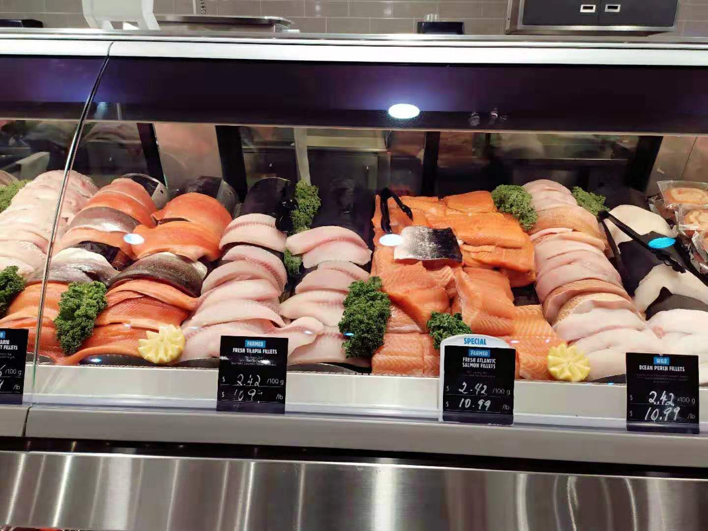 还有新鲜的三文鱼,折合人民币60元/斤,喜欢吃三文鱼的小朋友好幸福呀