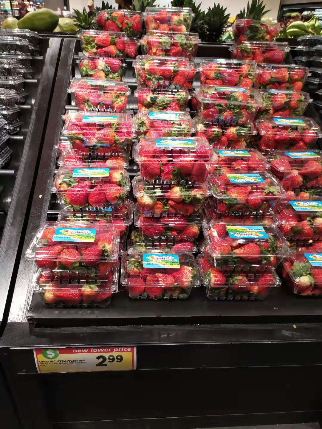 草莓:2.99加币/盒,约人民币15元/盒,而且买水果还不收消费税,好开心