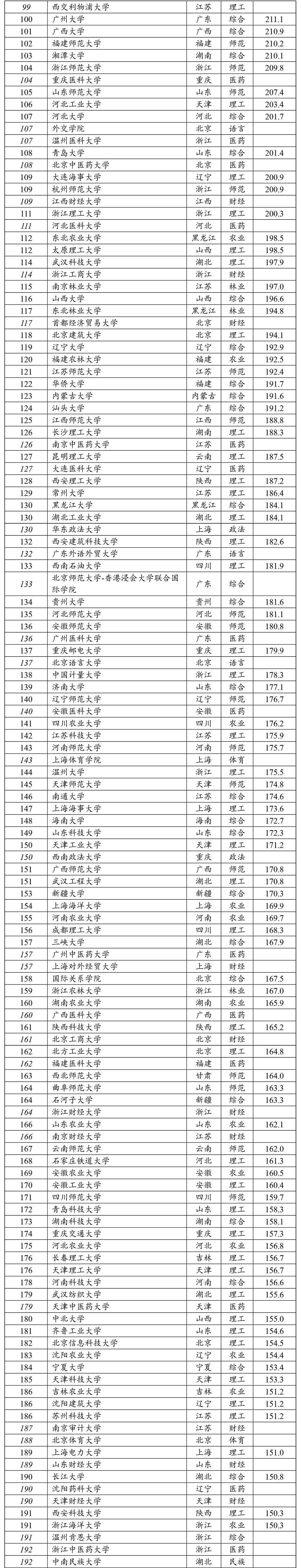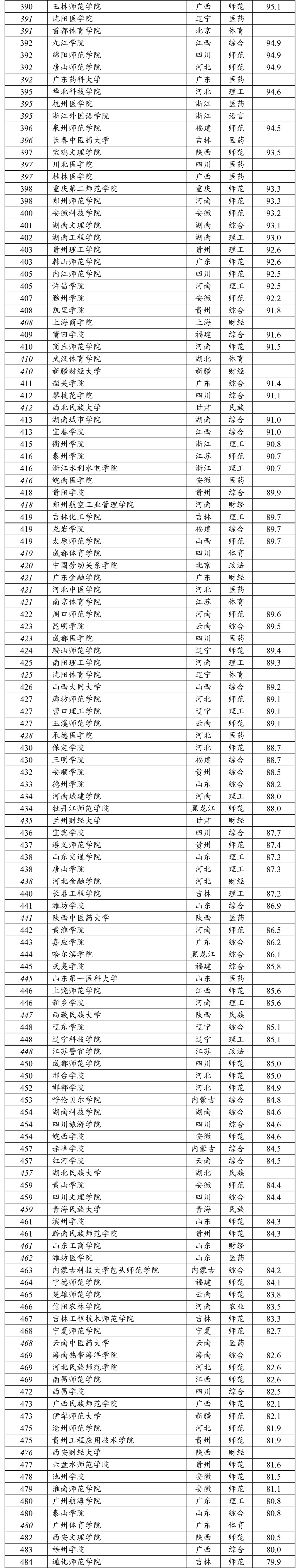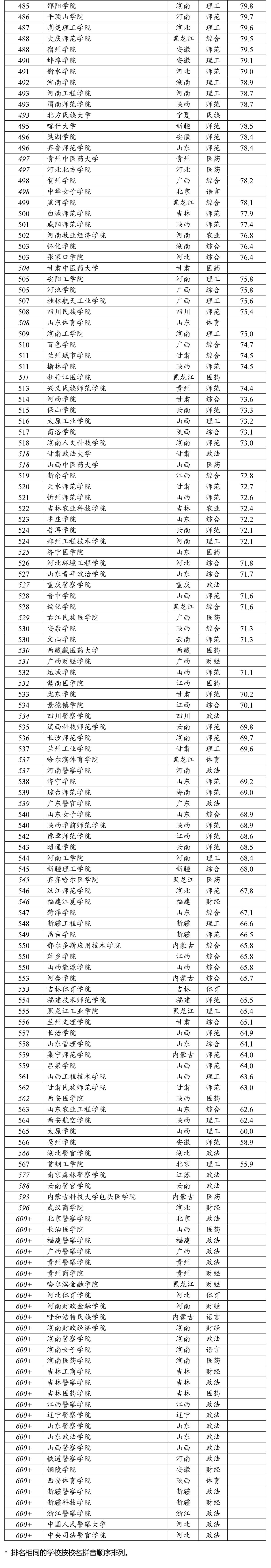 在每一类型的排名中,参与排名计算的不仅有本类型的大学,也包括综合性大学和所有其它类型的单科性大学。