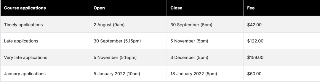 以VTAC为例,早鸟申请价格为$42,错过了早鸟申请,迟交申请的费用直接涨到$122,贵了大约3倍!所以赶早不赶晚,尽早申请总是没坏处的!