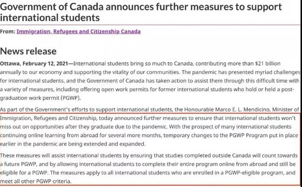 根据加拿大移民局发布的最新消息显示,留学生申请毕业工签PGWP的有效期将延长至今年年底12月31日!在此之前在国内上网课,毕业后工签的申请将完全不受影响,在2020年春季-2021年12月31日期间,留学生们在加拿大境外学习的时间都将计入PGWP的有效时间。