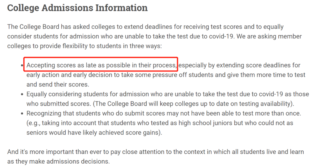 在录取过程中,平等地对待因为疫情无法参加 SAT 考试的同学;