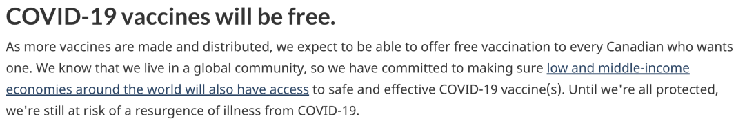2.新冠疫苗对加拿大公民免费。加拿大政府保证新冠疫苗对本国公民免费但是还没有公布对留学生、工签人士是否会收费,根据小编的推测,大概率是会收费的,但是绝对可以注册,具体收费会是多少一旦有新消息,就为大家汇报~