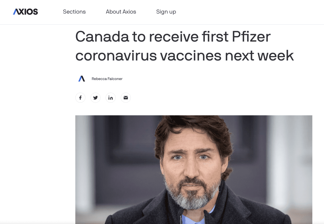 就在今天,众多加拿大官方媒体如Bloomberg, The Hill, CBC News等纷纷爆出有关加国疫苗的新闻。据悉,引起此头条新闻的源头是加拿大总理特鲁多召开新闻发布会宣布制药巨头辉瑞公司所研制的新冠疫苗将在一周内抵达加拿大!