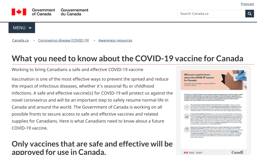 小编为大家详细阅读了加拿大政府,最新发布的有关新冠疫苗的文章,感兴趣的朋友可点击链接阅读原文:https://www.canada.ca/en/public-health/services/diseases/2019-novel-coronavirus-infection/awareness-resources/know-vaccine.html