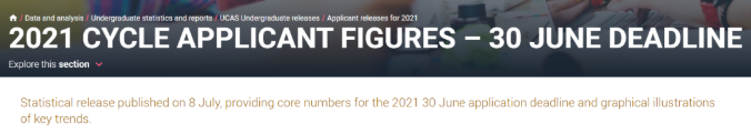英国时间7月8日,英国大学招生服务中心UCAS发布了《英国大学2021申请季末期报告》。这份报告提供了截止至2021年6月30日申请英国大学本科学生的相关数据,以及申请趋势的图表说明。