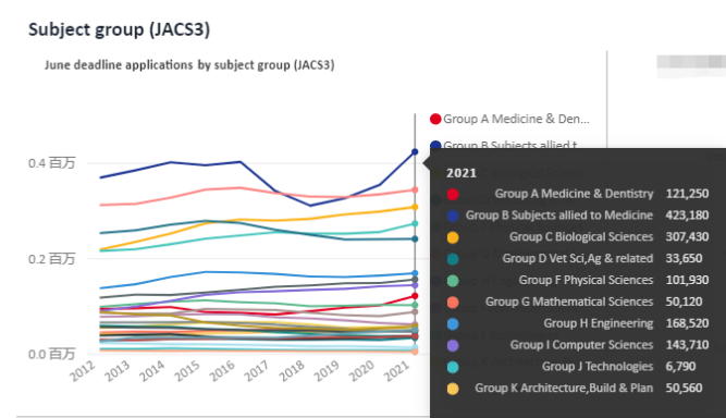 医学专业不仅是申请人数最多的专业,也是近三年涨幅最高的专业。在一月份的数据统计中,UCAS官方分析,由于疫情肆虐,让学生对专业的选择倾向方面有了极大的变化。一方面疫情让人们意识到,社会对护理人员的需求缺口很大,另一方面,疫情导致的不确定性,让学生更倾向于选择“相对稳定”的职业从而选择了如医学类、工程类、建筑类专业。