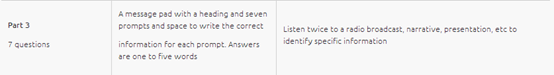第三部分7个问题,1-5个单词的填空题,一般为正式信息。