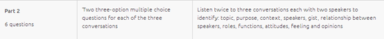 第二部分6个问题,均为3个选项的多选题,三段对话,可以听两遍
