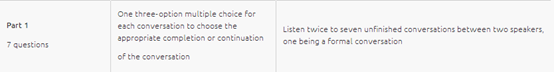 第一部分7个问题,是我们熟悉的三选一,有2-7段对话,根据语境选择合适的下句。