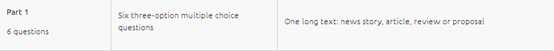 第一部分6个问题,六道3选题,一般为一个长篇新闻或评论文章
