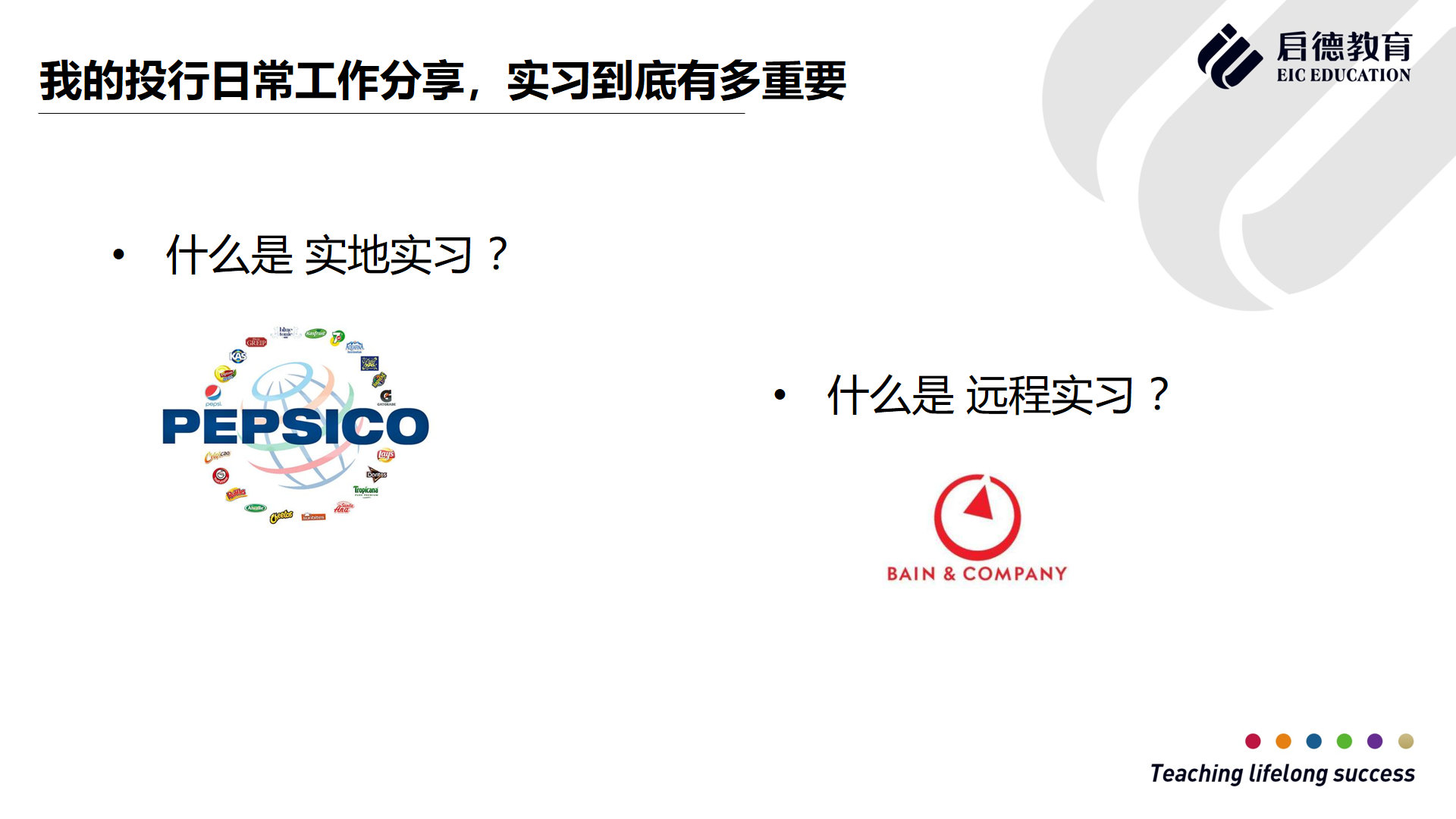 实习做远程的时候可能会规避掉一些风险。VAN对启德教育展的学生说,“同样的项目,放到了实地的时候,比如说你在办公室,你老板说两个小时里面,你帮我做出来,如果你不会,如果B实习生会,这个时候B实习生就成功上位了,这就是远程实习的好处。远程实习的劣处是不会很快的进入到公司了解人,也不会很快的去跟人家打熟。”