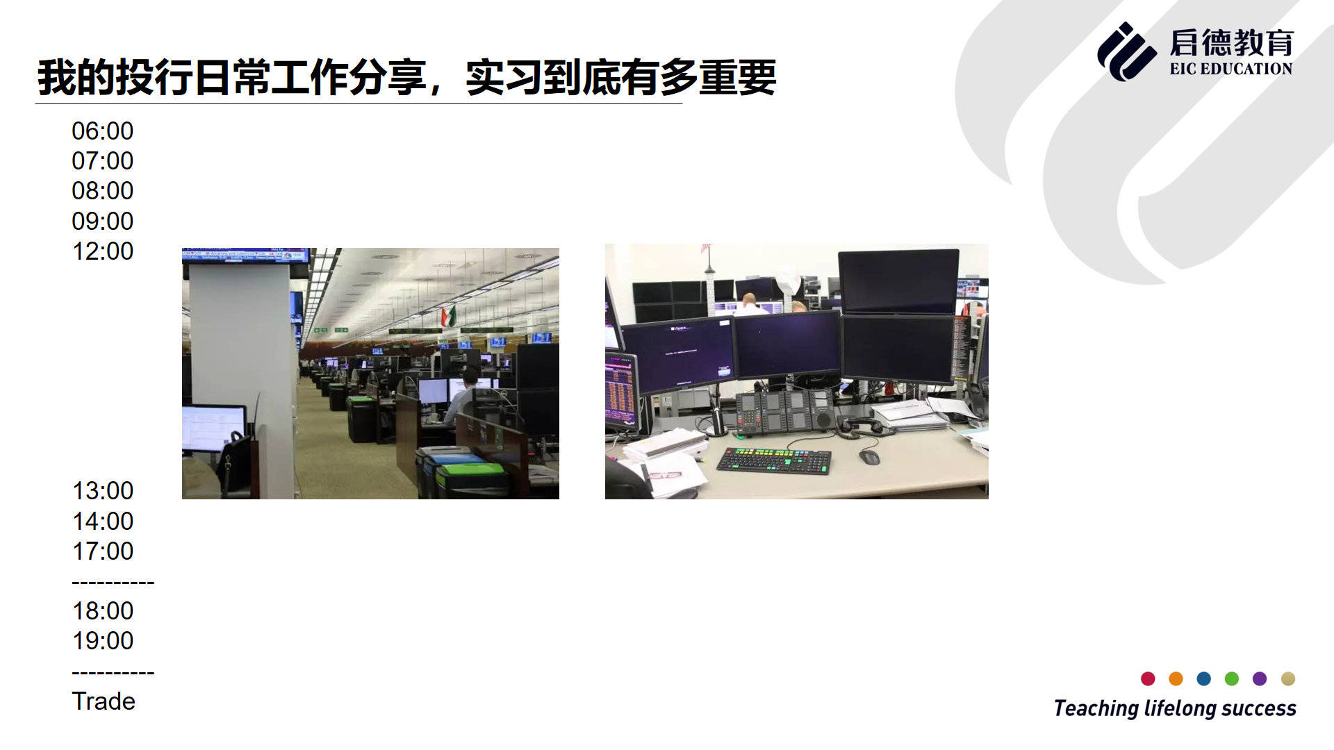 在启德教育展上,VAN也分享了他第1年第2年在高盛的工作经历,基本上每个周一都是6点到办公室,6:00-7:00整理整个亚太的新闻,7点把上周的所有的信息发给亚太的的投资者,7:00-8:00是亚洲的晨会,8:00-9:00是中国A股的晨会。