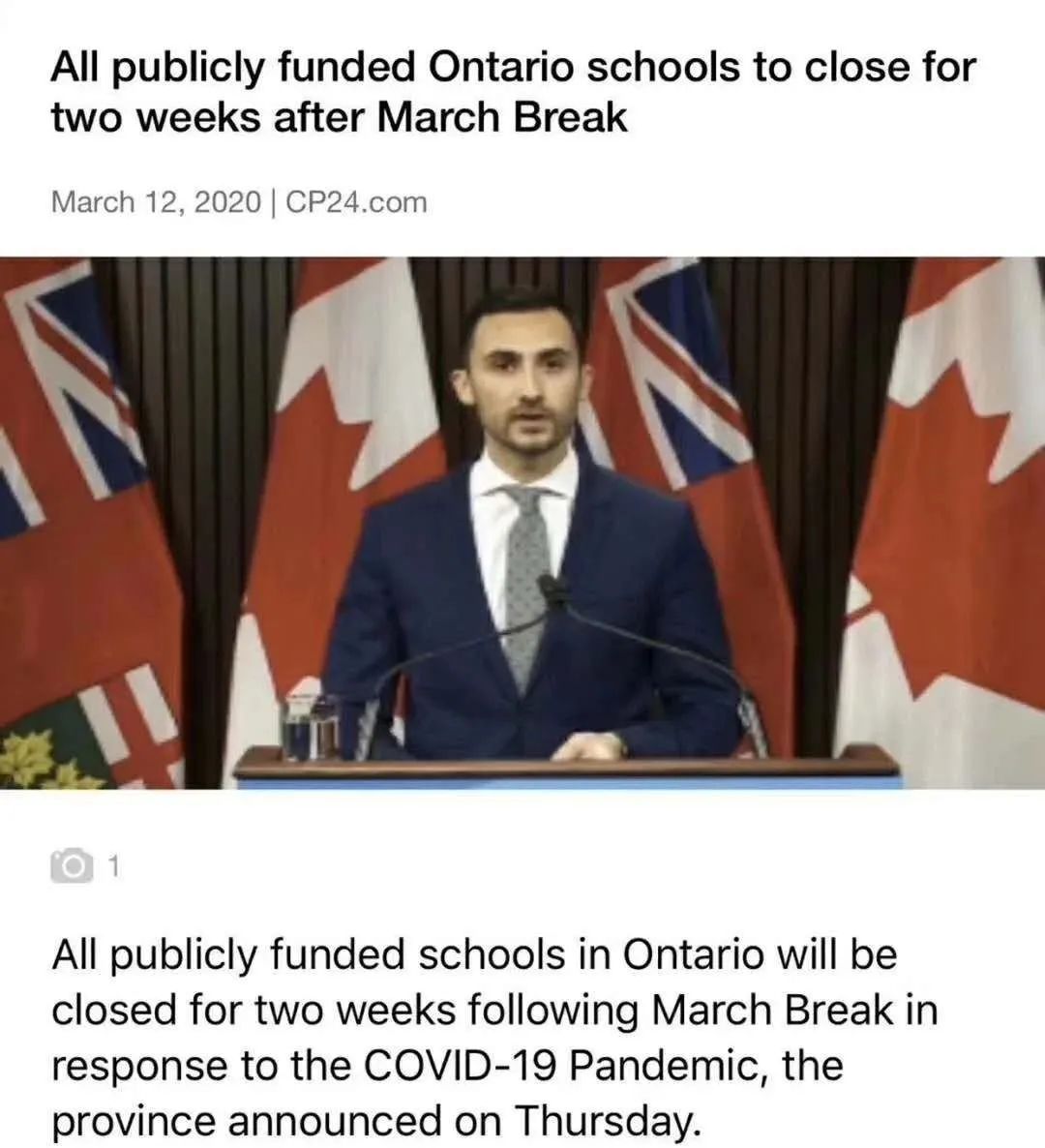 加拿大安大略省周四宣布,为应对COVID-19大流行,安大略省所有公立学校将在3月春假后继续关闭两周!同时许多加拿大大学和学院发表声明,学校已经在召开会议,寻求其他可行的应急措施。