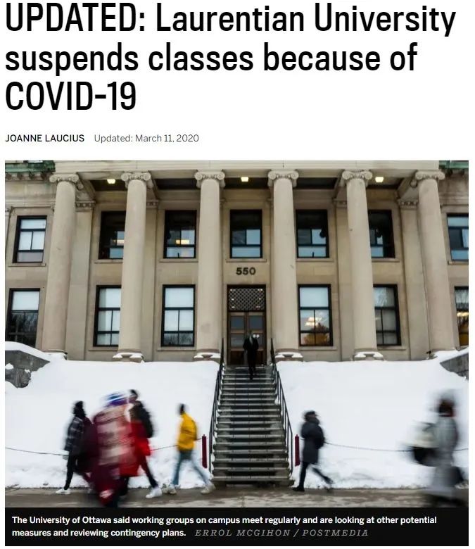 据悉,学校是因为10日在该地区出现首例新冠肺炎确诊病例,最终权衡做出了这个决定,这也是加拿大首个因预防新冠病毒停课的大学。
