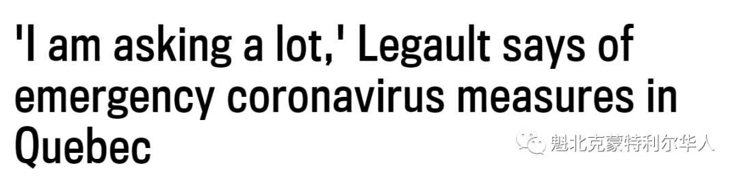 省长Legault 承认,“我要求的很多很多。今天起,魁北克必须将自己置于紧急模式下。接下来的几周至关重要。我们的目标是最大限度地减缓病毒的传播。”