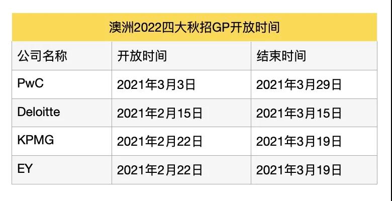 澳洲2022四大秋招GP开放时间