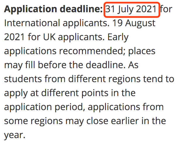 还有一部分专业的暂定截止日期为7月31日,但也有可能提前截止申请。包括: