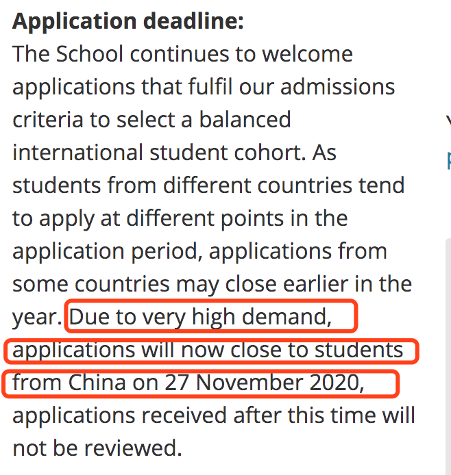 以下专业将提前截止来自中国学生的申请受理,截止日期为12月7日。