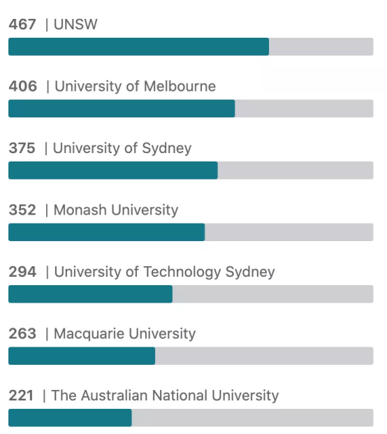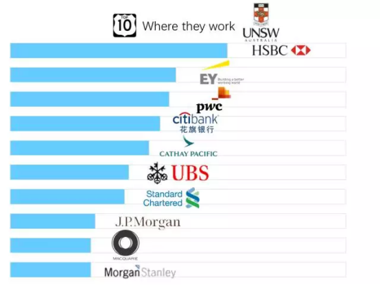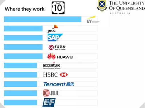 小启不敢说百分百,但LinkedIn的相关统计数据说明,大多数澳洲名校毕业生都进了名企。这里列举几所大学的毕业生工作地TOP 10: