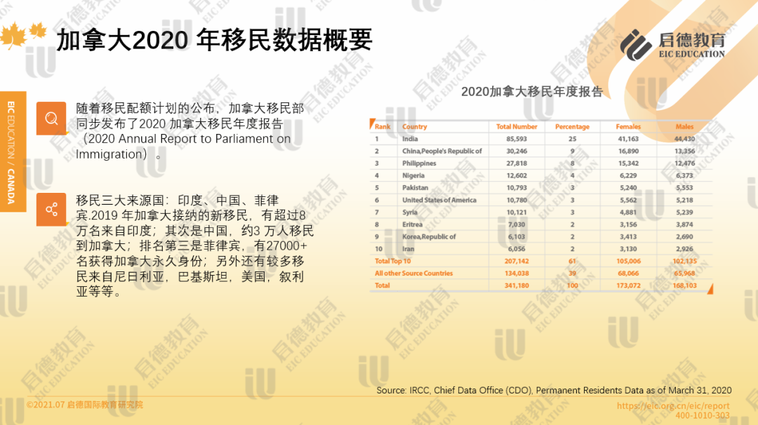 加拿大作为移民大国,自然也会有不少留学生考虑未来移民加国。根据加拿大移民部发布的2020加拿大移民年度报告显示,中国已经成为移民三大来源国之一。因此对于移民有想法的同学,加拿大也发布了不少移民利好政策值得大家关注。2020年10月底,加拿大宣布一项移民计划,目标是2021-2023年每年接收超过40万新移民,这是加拿大历史上接收最高数量新移民的计划。在加拿大历史上,只有1913年接收的新移民人数超过40万,超过当时人口比例的5%。2021年1月15日,加拿大总理特鲁多向移民部长门迪奇诺签发了新补充的移民任务授权书(NewSupplementary Mandate Letter),授权书强调,移民仍将是加国经济和社会发展的中心任务。同时在过去的2021年,加拿大新增移民数量开创了最新记录405000人,根据当前数据分析,随着未来当地退休人员的增加,加拿大会进一步增加对人才渴求的需要。