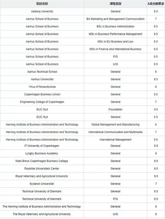 *更多丹麦院校的雅思分数要求: