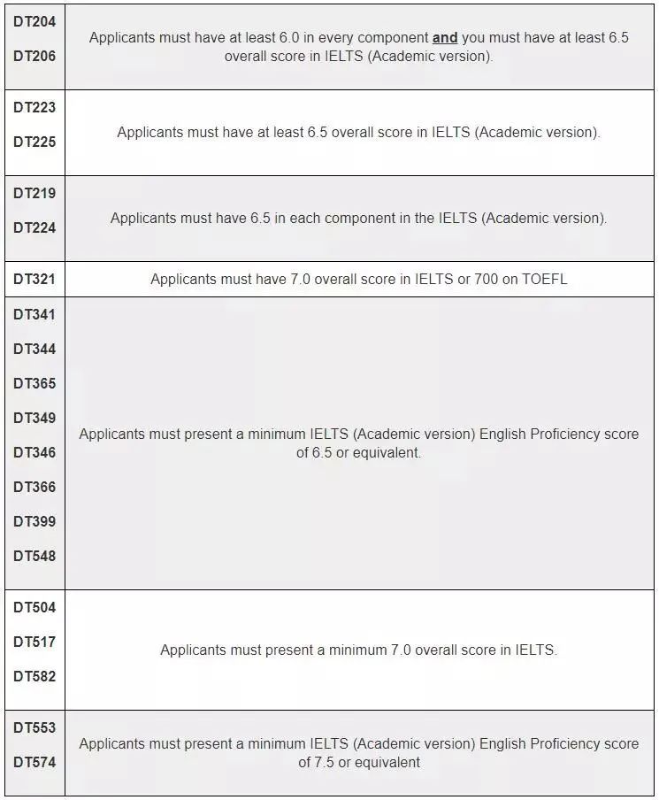 都柏林理工大学也一样,6.5分可以满足大部分专业的要求,个别专业则需要7分-7.5分才可以申请。