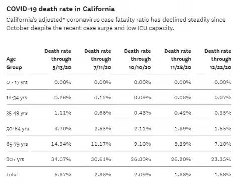 根据传染病流行病学专家,加利福尼亚大学加利福尼亚艾滋病毒/艾滋病研究计划退休主任George Lemp收集的数据,新冠疫情以来,总体死亡率从5月的5.9%下降至10月的2.1%,并进一步下降。在12月底降至1.58%。