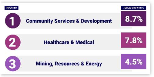 2019年底澳洲的招聘广告同比下降了7.3%,意味着岗位需求减少了。但同时,有几个行业的需求没有减少,反而有着强劲的增长趋势。