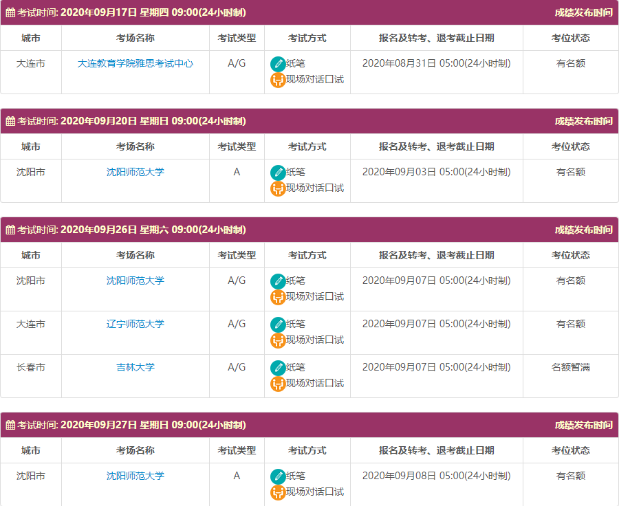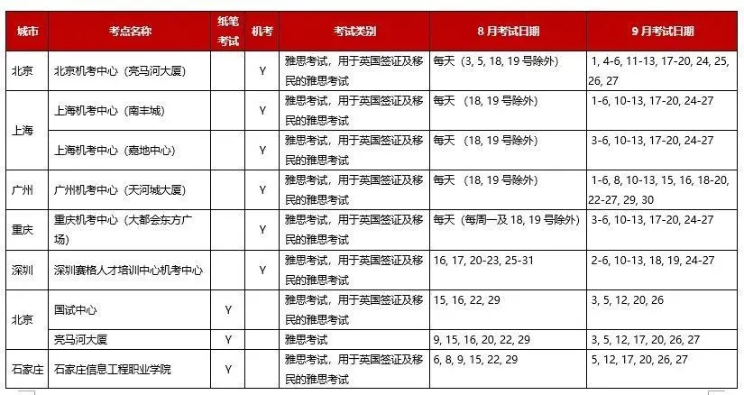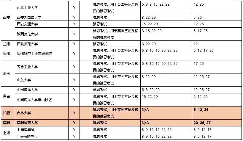 9月继续新增合肥工业大学(翡翠湖校区),吉林大学,沈阳师范大学和云南财经大学4个雅思纸笔考点恢复考试。