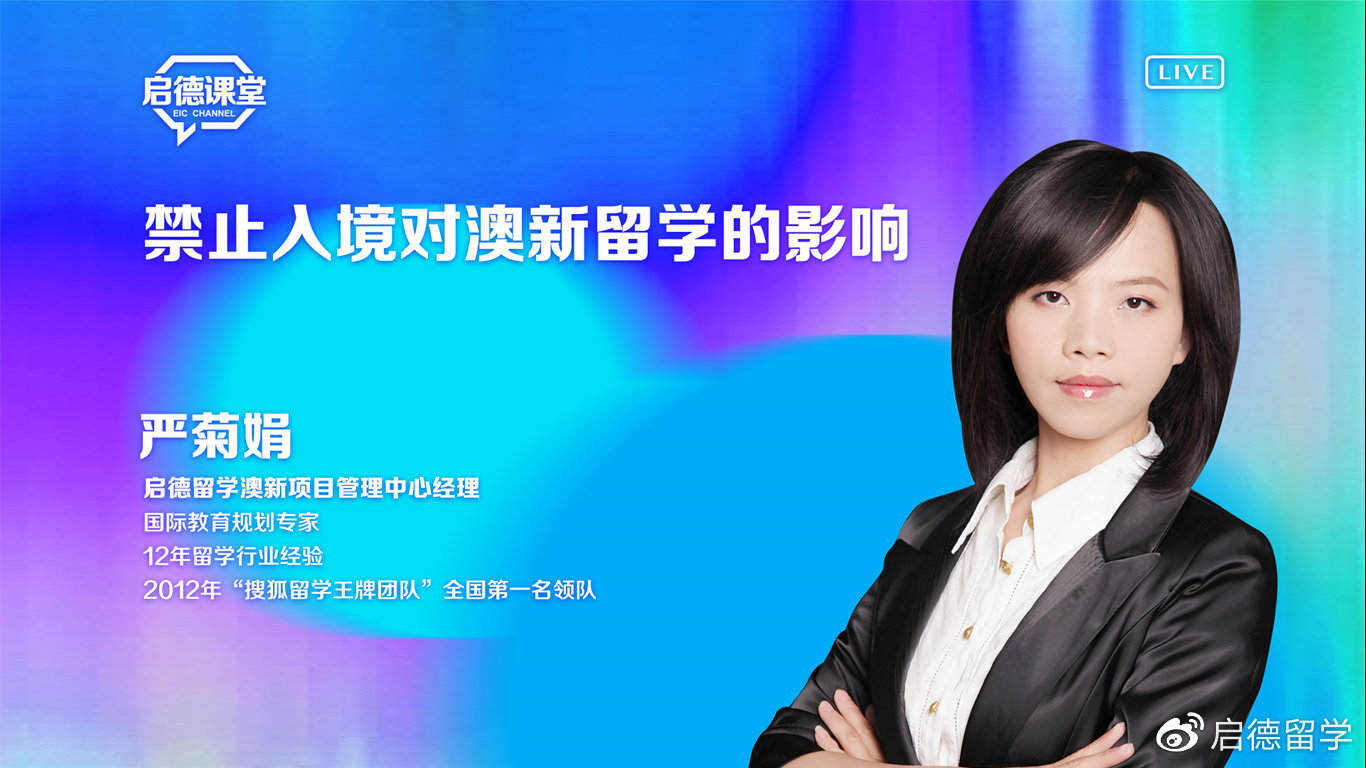 2月7日,在启德教育《特殊时期留学规划“关键点”》的直播现场,启德留学澳新项目管理中心经理、国际教育专家严菊娟就以上热点问题进行回复,并讲解了疫情对于澳大利亚及新西兰留学的影响,为返校生和准备申请澳新的学生提供指导性的建议。