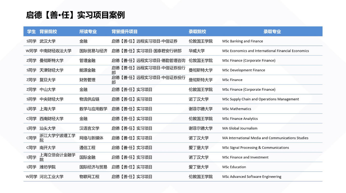 对于申请人来说,软实力体现在专业相关的科研、实习以及创新活动,学术论文的发表或者其它实际产出,也可以很好地反映软实力。如何针对性培养软实力?商蕊老师建议学生能够争取一些大企业核心岗位的实习机会,实习的形式可以选择远程实习与实地实习相结合。一般来看,一两个远程实习,配合一个实地实习是不错的方案。远程实习除了可以提供职业初体验,评估所学专业和职业是否匹配,导师可以提供1对1指导,在时间与地点方面更为灵活。